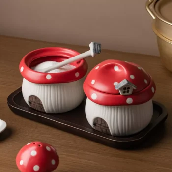 Ceramic Red Mushroom Spice Jar & Seasoning Bottle Set