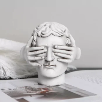 Emotive Resin Head Sculpture with Hands Over Eyes